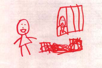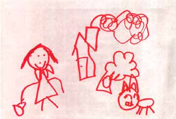 あかずきんちゃんがおばあちゃんのおみまいにでかけるところをおおかみがみていました