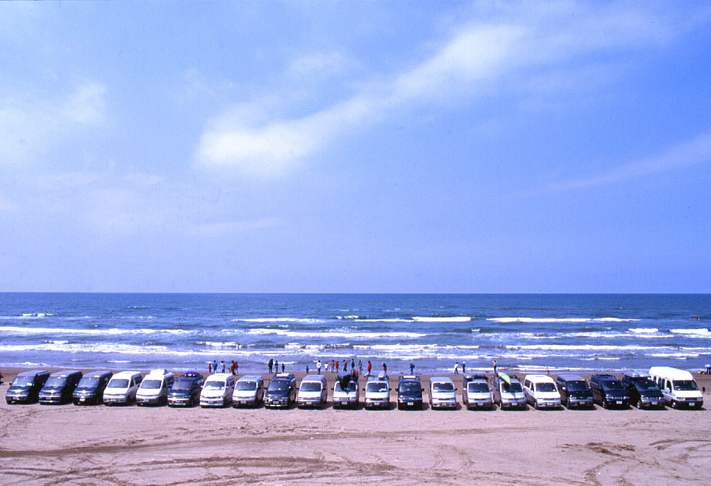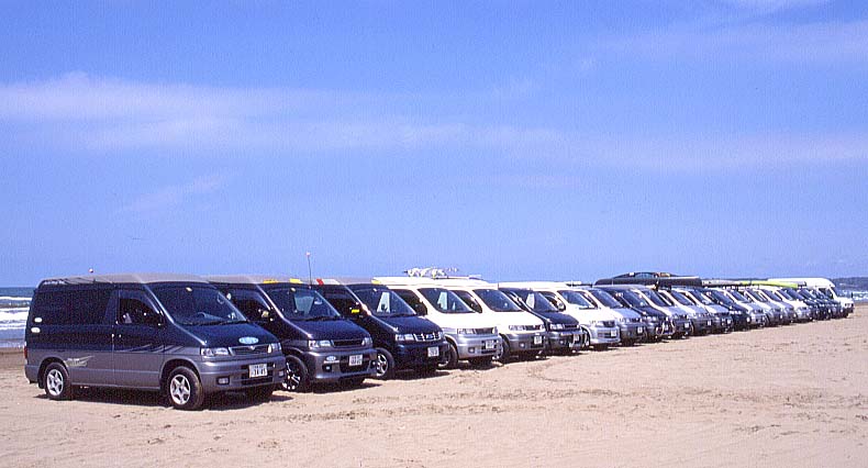 早起きは三文の得。朝6時に道の駅「井波」から 大島キャンプ場に向かう途中にあらわれた虹。 千里浜に集まったフレンディ&フリーダ&エルフUT 画像をクリックするとフルスケールでご覧いただけます。 更に大きなサイズ 1024×700 (236KB)