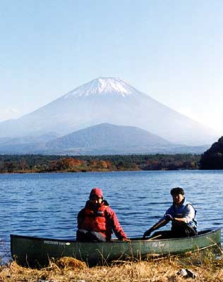 1998−10山梨県・精進湖にて キレイな富士山を見ながら漕ぎました。