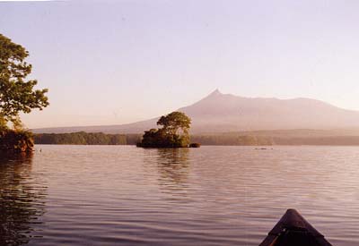 4:30に函館着。函館といえば大沼(↓)。朝焼けでキレイに染まった駒ケ岳