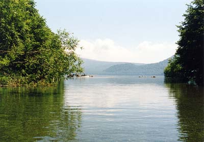 下の写真はキャンプ場横に流れ込んでいる千歳川から見た支笏湖