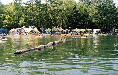美笛キャンプ場に行ってみると波もなくて良い感じ。実は去年は波が高く