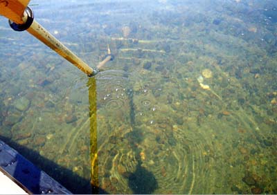 水深は推定1.5m。パドルの影までクッキリ見えます。