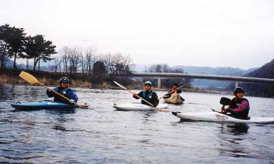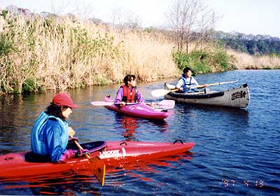 小倉橋をスタートして相模川を下る。カヤック大勢の中で私だけカナディアンカヌー 小さな子供から「あのカヌーだけ大きくてカッコイイ!」という声援を受ける。ちょっとうれしい(^^)