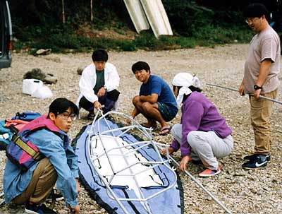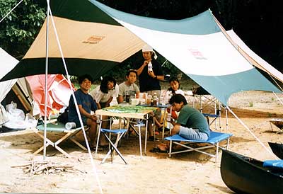 人工物が全くない入り江を見つけキャンプ 左からmasaru,miho,るーさー,ブル西山,未央ちゃん,白樫さん(カメラマンは大野さん) トイレが無くてちょっと不便・・・