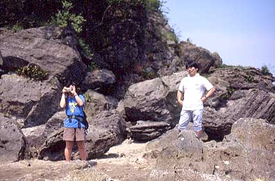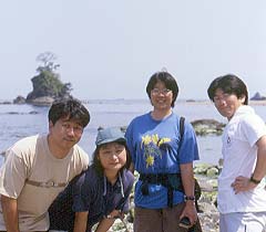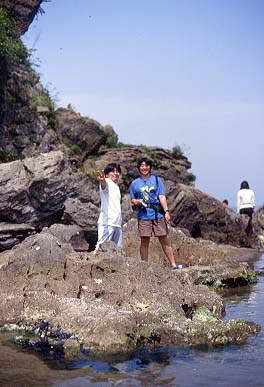 「きときと寿司」にチャリンコで行ったヤマウチ・アベ組はその後雨晴海岸を散歩 左がアベ夫婦・右がヤマウチ夫婦 ウミウシがたくさんいた。ちょっと気持ち悪かった・・・水はキレイですねぇ