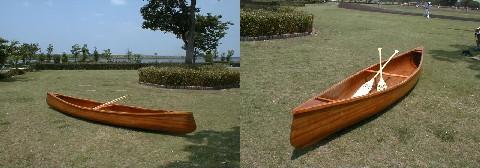 トービマリンカヌークラブの沢田さんと干場さんが共同で製作 されていたウッドカヌーがいよいよ完成しました! 6・13日に道満グリーンパークの彩湖で進水式を行い、安定性・ スピード共にとても良かったそうです! 次回作にも期待しちゃいます