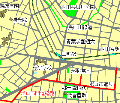 ボロ市通りは毎年1月15・16日と12月15・16日に行われるボロ市のメイン会場となり、期間中は延べ100万人近くの人々で大混雑します。文化文政までは旧大山道として多くの旅人が行き交いましたが、普段は代官屋敷を中心に商店が建ち並ぶ静かな商店街です。毎年7月に行われる「ホタル祭りとサギ草市」でも露天が並び、賑わいを見せます。 ボロ市のついてはこちらをご覧下さい。 |