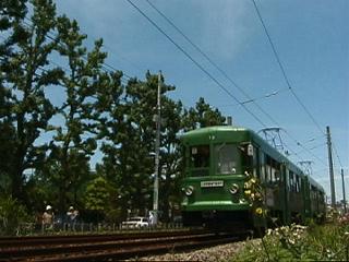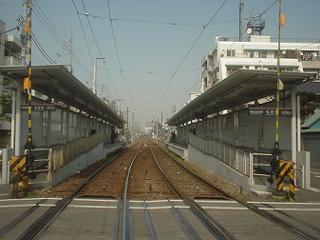 写真奥を世田谷線の旧型電車が通り過ぎています。
