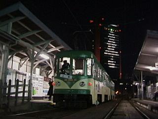 空気の澄んだ日には遠くは房総半島方面や、富士山、秩父連山まで見渡すことが出来ます。 ![]() 世田谷線の旧型電車とキャロットタワー 毎年12月20日頃からクリスマスの夜までは、キャロットタワーにクリスマスツリーが浮かび上がります。 |