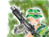 最新銃を装備したサバゲーマーです装備銃はH&KG-36Cです・・。実銃も発表されたばかりで・・・。資料が少ない・・・。 以上THIRDのラクガキでした〜。