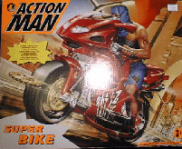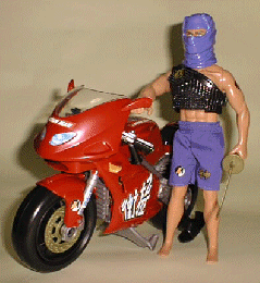 SUPER BIKE & NINJA このBIKEはプラモデル感覚の組み立て式で、人形は別売。箱の絵とあわせるためにNINJAも買ってしまいました。NINJAとBIKEというミスマッチがいかにもACTION MANという感じでGoodです。(こんな派手なNINJAいないって) |