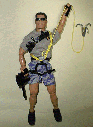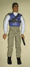 HANDS UP 名前の通り、背中のレバーを押すと「手をあげろ」と銃を構えるギミック付き。銃は手に固定されており、肩の関節以外は動きません。こういうギミックものはGIJOEには無い「遊び」の楽しさを教えてくれます。 |