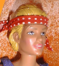 NATALIE 本家GI JOEでも11月には女性キャラを復活させますが、こちらは一足先にリリースされたACTION MANの女性同志。しかし、なぜかイギリスでは売られていないそうです。右頬ではありませんが、右眉にしっかり傷痕があります。写真ではわかりませんが、足の後ろのレバーを操作するとキックをするギミックが付いています。 |