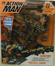 SNIPER バリバリの迷彩服に豪華装備のお買得なセット。 付属のスコープは実際に見ることができます。 |