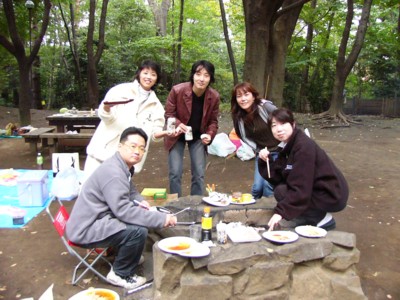 | BBQ at 駒場野公園Park (2003.10.25) 駒場、東大前駅の直ぐ傍という落ち着いた場所にある公園は、こじんまりしているものの、設備は充実。 少し肌寒い天気ではありましたが、BBQの味も最高でおなか一杯になりました。 U原家は、ご家族でご参加でしたが、今回は終始お行儀の良かったボムちゃんが代表で当HPデビューされました。 今回のBBQの予約、食材の手配をいただきましたI家、M家、日本一を逃しjはしたものの一年間盛り上がりを見せた難波のお嬢様方、どうも有難うございました。 (次回は、管理人も家族ともども参加できるよう平素の家族との対話に努める所存です) |