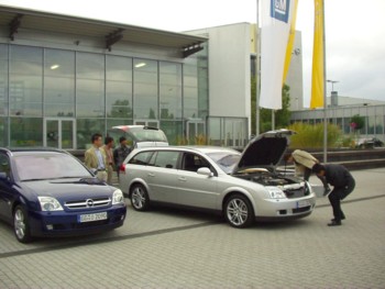 ![]() 今回は、こちらの車の試乗会のためのドイツ行きでした。ルッセルスハイムのOぺる本社の建物内が、プレゼンテーションルームに変身。 |