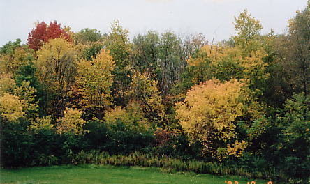 遅い春、短い夏、秋の紅葉の見事さは、取りも直さず長い寒い冬の存在を意味する。12月から3月までは、灰色の景色が続く。因みに積雪は、10インチクラスが、年に5,6回と多くはないが、零度を超えることが少ない冬場は、一度降った雪は2,3週間は解けない。 |