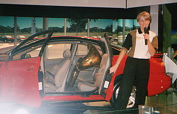 | ピーター・ドラッカーは、その著書「マネジメント」の中で、「企業の唯一の目的は、顧客の創造である」と言っている。サターンが、日本で沢山の顧客を創造出来なかった主な理由は、商品ラインアップと販売店舗数が少なかったからだ、とは今日誰もが指摘することだ。 日本のユーザーが輸入車に期待するものは、国産車と明らかに差別化されたスタイルや乗り心地であったり、またステータスシンボルとしての記号性であることは確かである。 しかし、サターンに共感した潜在顧客は、意外と多かったと思う。(サターンが最初に日本に導入された97年4月、一週間で1万人を越える人が、8つしかなかったサターンの店を訪れた。)サターンには、意志と信念は過剰なほどにあったが、戦略は完全ではなかったし、そのことはある程度理解されていた。。 だが、完全な戦略を持ってスタートするプロジェクトなど一体どれだけあるだろうか。 要は、継続し改善することだ。 | ![]() 1999年北米自動車ショー。 3ドアクーペがデビューした。リア席にあるのは、チューバ |