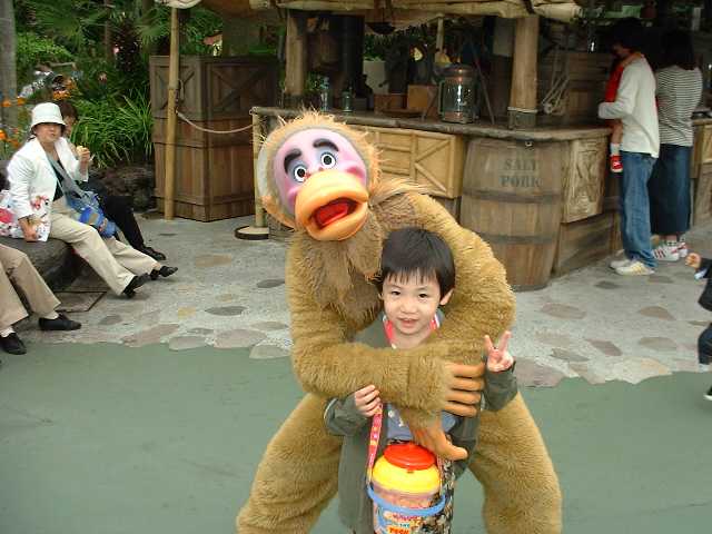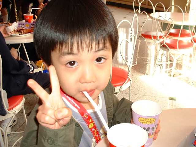 2002.04.18(木) ディズニーランド 「ぼく 恐いの嫌い!」 ジェットコースター系はだめのようです。 ちびっこに今1番人気のプーさんのハニーハントもちょっと苦手(ちょっと情けない) 1番気に入ったのはSL列車とポップコーンでした。