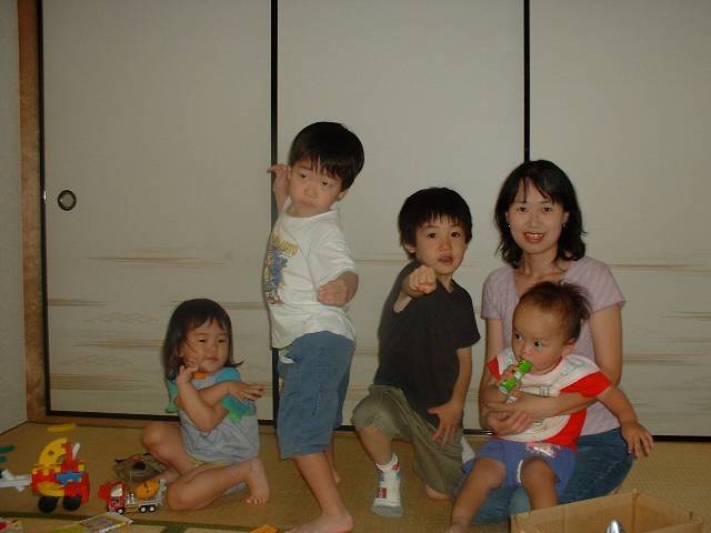 2002.06.20(木) ゆうきくん・ゆいちゃん・あいちゃん 「おひさしぶりー」 川崎に転居したお友達のおうちに遊びに行きました 大雨だったので最近一人で遊びすぎのお父さんは車での送り迎え係を買って出ました
