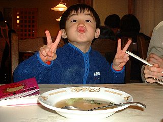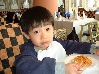 2003.01.01(水)〜03(金) 伊豆高原 遊TIME @庭の小さなお家A室内のお家 一番のお気に入りは庭の電車、¥100で3周でした ぐらんぱる公園 BトランポリンCふわふわスライダーDボールプール このために往路3時間30分復路5時間かけて参りました 来年も来るんだろうな・・・トホホ シェンロン Eフカヒレの姿煮と価値のわからない男 夕食も最高においしかったけど朝食の朝粥は母さん絶賛 インターコンチ のFラ ヴェラでランチ