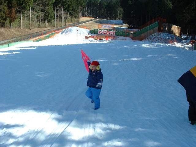 2003.02.06(木) 箱根ピクニックガーデン 到着時に駐車場から見た時は 父「狭くて傾斜も無いな。やっぱり子供の遊びだ」 と思っていましたが5分後には尚と夢中で遊んでいました。(笑) 尚「今度はボールを持ってこようね」???雪遊びに使うらしい???