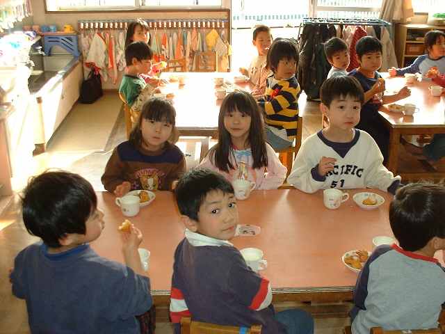 2004.01.29(木) さよならカリーナED&おやつ(02.19) 16年乗った愛車も水漏れで廃車に 父はとっても気に入っていたのですが・・・(涙)。 (車の奥の建物が保育園です) 保育園のおやつ、今日はまん丸ドーナッツとミルク おかわりもOK これと給食が1番の楽しみみたいです