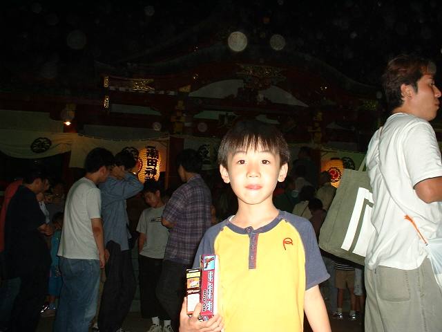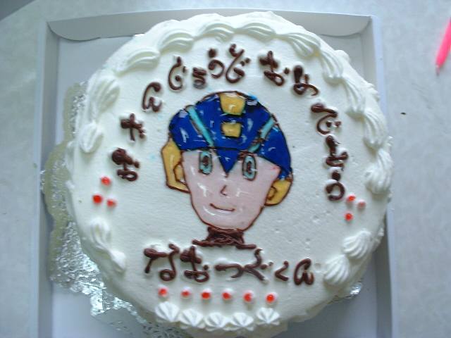 2004.06.05(土) 潮田神社例大祭 毎年恒例の鶴見の親戚のケーキ屋さんに遊びに行きました 夜店ではクジを5回引きましたがお目当ての「へェ〜ボタン」はゲットできず(泣) 綿菓子とケーキ(ロックマン)をおみやげにしました キャラクターケーキのご注文はこちら