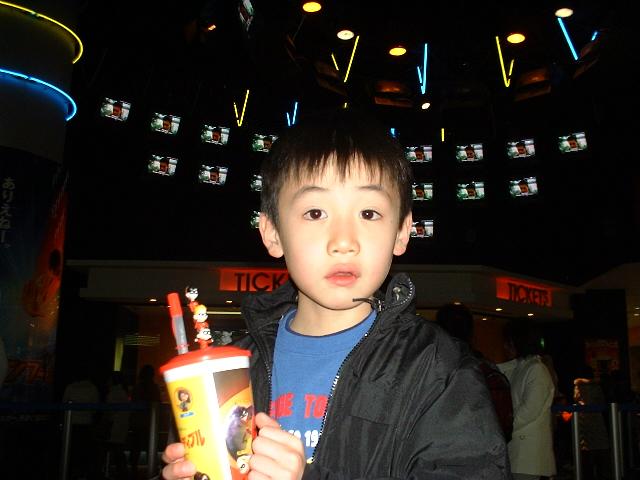 2005.1.6(木) Mr.インクレディブル ワーナー・マイカル・シネマズ みなとみらい ポップコーンとジュースとホットドックのインクレディブルコンボ (スタンプ付きフィギア2個付き)で¥1050 尚はおもちゃ付きとかに弱い。 うーん。父さんちょっと甘すぎるかな?