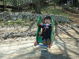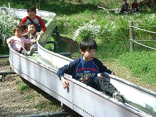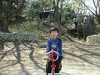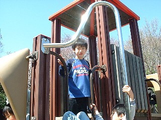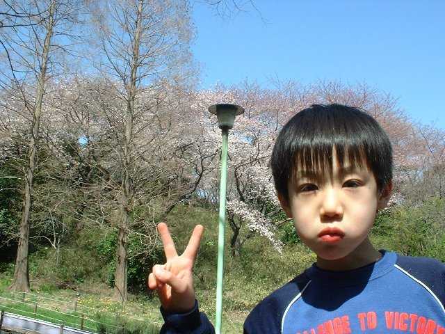 2005.4.7(木) 三ツ池公園でお花見 池に沿って約1.5Km、1000本の桜が楽しめます。 のり巻きを満開の桜の下で食べてから、遊具・アスレチック・ローラー滑り台・ ジャンボ滑り台(お尻に引くダンボールは必需品)で遊びました。