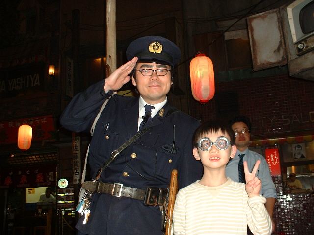輪投げ(1回¥200)でがり勉メガネゲットしておまわりさんと記念撮影