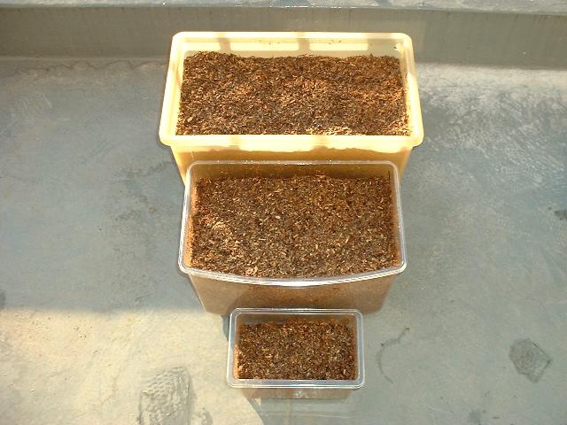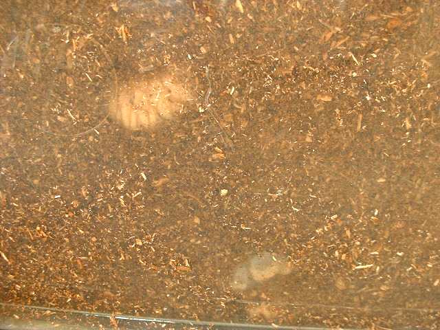 2006.1.12(木) 冬眠? この1ヶ月まったく上に出ていないようです。 週1の霧吹き時に外から確認していますが 毎回身動きしていない模様 冬眠?まさか☆になってるんじゃ? ケースひっくりかえしたーい(笑)! 小ケースの下に1頭、中ケースの下に2頭、大ケースの下に2頭 見ることが出来ます。 大ケースのあと2頭は確認できません 今回もフン取りは中止、暖かくなる3月までだめかな? マットはカチカチでケースを横にしても崩れません