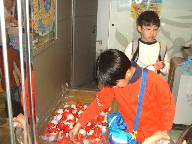 ヘッドピンに赤ピンが出て倒すとお菓子がもらえました