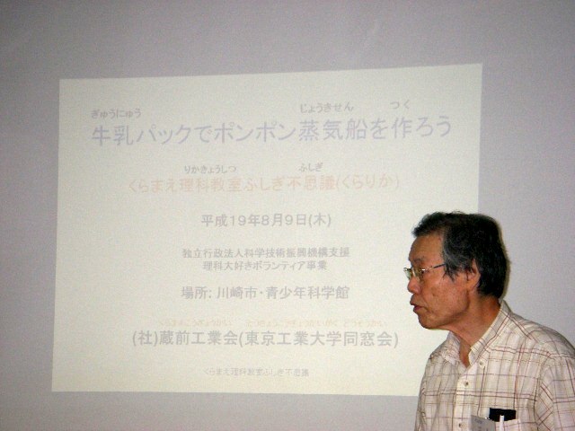 往復ハガキで応募して当選しました。 東工大OBの方々が先生です