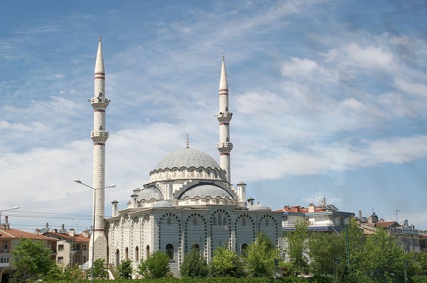 移動中の車窓から、このような ドーム 全体が随所でみられます。 ドーム につきものの 尖塔(ミナレット) は、付近の住民に 祈りの時間を告げるためのもの だそうで、現代は大きな声をださなくても済むスピーカーがついています。 ドームの背後のどの家の屋根にも、 温水パネル と タンク が設置されています。