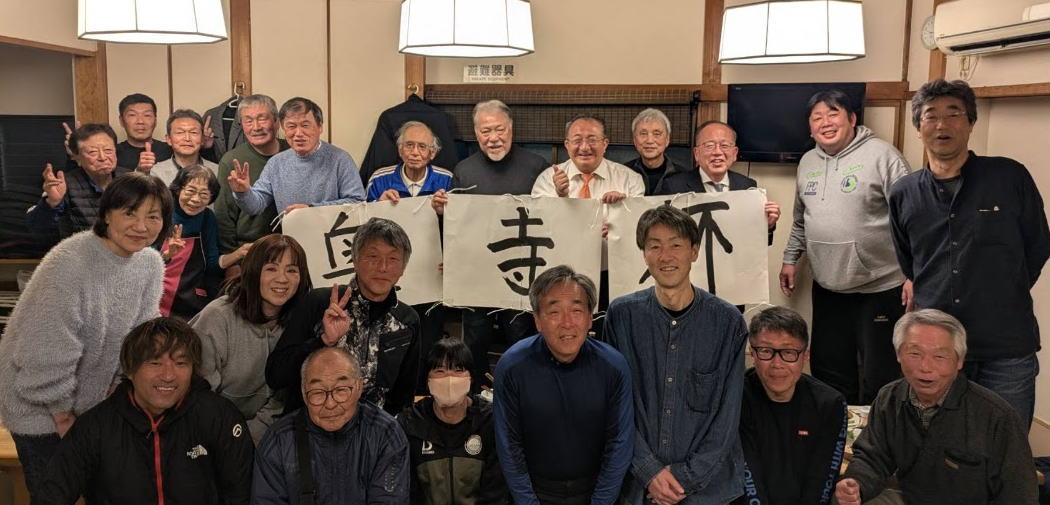 2025年度奥寺杯(2025年12月20日、21日、27日実施)の打ち上げ会(2026年1月11日)に集まった奥寺康彦様と大会関係者の写真です。1/12