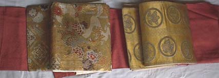 金糸銀糸で家紋が付いている袋帯