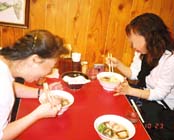 | 有名なお店で飲茶タイム〜 ニラ・肉・ゴマ饅頭&シュウマイ・杏仁豆腐etc 「食べきれないよぉ〜」と云いつつ? 箸は動く。。。!? 「あっ シュウマイは2個ずつだよね? 1個無いよぉ〜」 「えっっ!? もう飲み込ンじゃった はふはふっ (^_^;)」 |