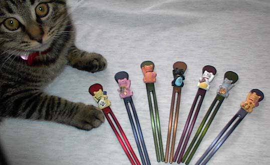 招き猫のヘアスティック スティックサイズ:約15.5cm 猫ちゃんは約3cm 一本 ¥750 |