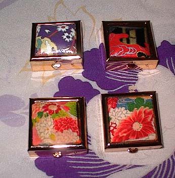 ピルケース サイズ:約4×4×1.5cm 柄部は約3cm角 一個 ¥1200 左画像:大島系 左上@ 右上A 左下B 右下C 右画像:レトロ系 左上(和紙)@ 右上(和紙)A 左下(錦紗)B 右下(錦紗)C |
