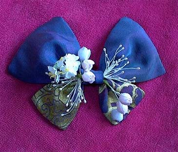 正絹 帯地リボン (紺) サイズ:18×8cm ¥1000 ★注:お花の種類が変わる事がありますので ご注文の際にご確認下さい |