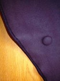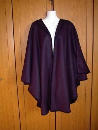 | ★サイズ (仕立て上がり寸法) L:88(背中心)・背中心から袖先まで76・繰り越し3cm ★柄・素材 濃紺のフリース(薄〜中厚?)で周りはテープ(紺色)始末 (フラッシュ無しの色はA) ★☆★☆★☆★☆★☆★☆ あまり厚手でない手触りの良いフリース(カシミアタッチ?)で 円形の一重(裏無し)マントを作ってみました ショールですと押さえていないとずり落ちてきますよね? これは袖口部を両側よりクルミボタンで留めて有りますので(B参照) 両手が自由に使え普通のマントの様に腕を出すときにバサバサしません 襟部はAの様に中心からオープンカラーの様になっています(後ろは無し) 柔らかいのでドレープが綺麗に出て一重ですがとても暖かいです 繰り越しを付けましたが洋服に羽織ってもステキかも? |