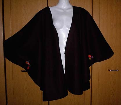 フリースマント−黒 ¥8800→¥7000\ 売り切れ m(_ _)m 着物ハンガーに掛けたカンジ ★☆コロコロのボンボンで袖口留め |