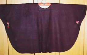 | ★サイズ (仕立て上がり寸法) L:約77(背中心)・背中心から袖先まで80・繰り越し3cm ★柄・素材 黒のフリース(中厚)で周りはロックミシン仕上げ (テープ無し) ★☆★☆★☆★☆★☆★☆ 写真が下手でいつも解りずらいのですが 色は黒になります 少し厚めのフエルトっぽい生地なので重くならない丈にして 始末と伸び止めを兼ねロックミシンだけ掛けてシンプルな作りにしました いくら「シンプル イズ ベスト」と云っても真っ黒で『カラス』に間違えられると困りますので? 髪留めに使ったコロコロのボンボンを袖口留めに使いました 片方には3ヶ もう片方はクルミボタンとブラブラ2ヶ 裏表に紋付きの様に付いてます お陰でカラスさんから ボンボンが揺れる可愛いマントになりました \(*^-^*)/ レトロチックなカンジですが ジーンズ等に羽織ってもとっても可愛いカモ??? 着物の時はパッチワークの縮緬バッグがお供にいかがでしょうか パンツスタイルの時はジーンズ生地に着物をパッチした大きめバッグ? ・・・お多福も同じ物着てます (^_^)b 今年のお多福の「一押し」の商品です m(_ _)m |