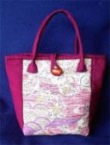 ウール着物地を使ったトートバッグ ピンク&紫がベースの紬風の古典柄の生地に 小豆色の木綿無地の組み合わせ ★☆★☆★☆★☆★☆★☆ 裏地はキルティング布を使用してふんわり仕上げ 小さいけど割と物が入りますヨ 普段用やお稽古時に如何でしょう? |