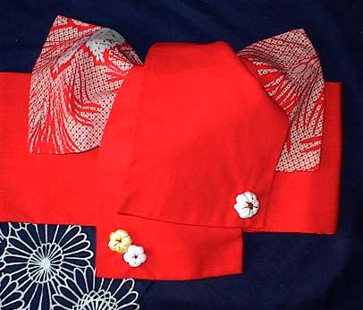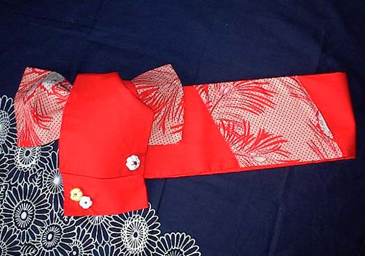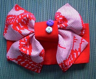 半幅作り帯 赤無地&鹿の子柄(梅の花付) 参考サイズ:約30×28cm 太鼓部タレ含む 110×15cm 胴巻き部 ¥3000 売り切れ m(_ _)m |