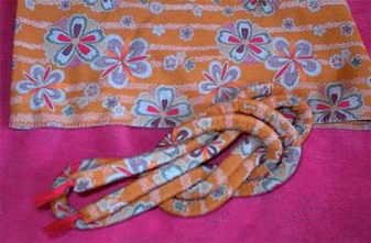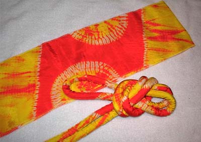 半襟&帯〆SET−朱系絞り 参考サイズ 160前後(房含まず)×約1、5(太さ)・半襟:110×14cm ¥3500 (数量2) |