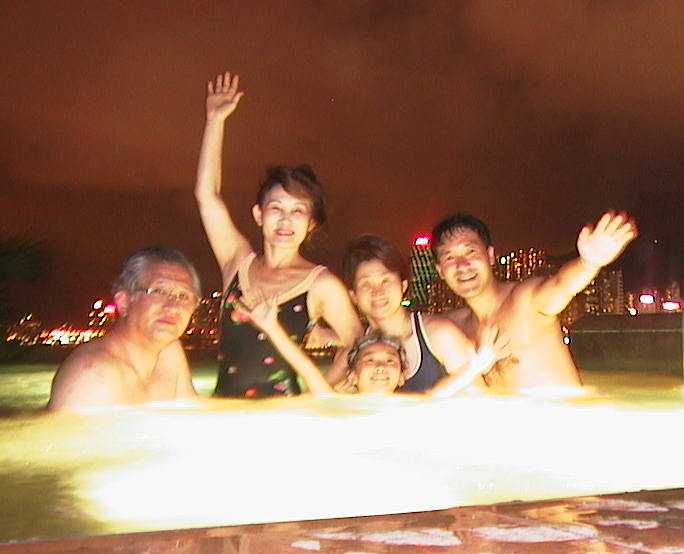 上の船で、香港島と九龍を行ったりきたりした後での記念撮影でしたので、笑っているつもりでもやや疲労感 →