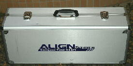 ALIGNはこんな専用のアルミケースがある。 ヘリ本体、送信機、フライトのLiPO(リチウムポリマー電池)と送信機の充電をす